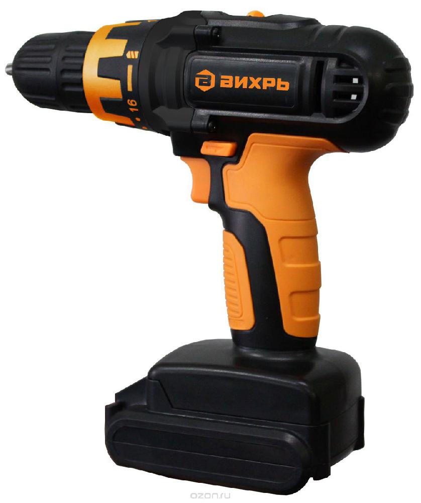 Аккумуляторный шуруповерт "Вихрь" ДА-14,4-2к диаметр сверления 25/10 дерево/металл. Тип патрона: быстрозажимной; Количество скоростей: 2;  Максимальное число оборотов холостого хода (об/мин): 1250 об/мин;  Максимальный крутящий момент (Н*м): 28 Н*м;  Количество ступеней крутящего момента: 23;  Максимальный диаметр зажима: 10 мм; Минимальный диаметр зажима: 0.8 мм;  Максимальный диаметр сверления древесины: 25 мм;  Максимальный диаметр сверления металла: 10мм; Подсветка: нет;  Электронная защита от перегрузок: нет; Кейс в комплекте: есть;  Гнездо в корпусе для крепления бит: есть; Питание устройства: аккумулятор; Тип аккумулятора: Ni-Cd; Емкость аккумулятора (А*ч): 1.3 А*ч;  Напряжение аккумулятора:14.4 В;  Время зарядки аккумулятора: 60 мин; Количество аккумуляторов в комплекте: 2 шт. Шуруповерт ВИХРЬ ДА-14.4-2к может сверлить различные поверхности: металлические и деревянные, а также закручивать шурупы. Имеет функцию реверса, которая будет полезна для выкручивания шурупов или ослабления крепежа. Прорезиненная рукоять надежно фиксирует инструмент в руках во время работы, а редуктор имеет 2 скорости, обеспечивая высокую производительность. Благодаря наличию быстрозажимного патрона процесс смены принадлежностей не занимает много времени.Легко регулируемая частота вращения позволяет настроить шуруповерт под нужную толщину материала. Уровень производительности – 1250 об./мин. Функция блокировки случайного включения сделает работу с инструментом более безопасной.