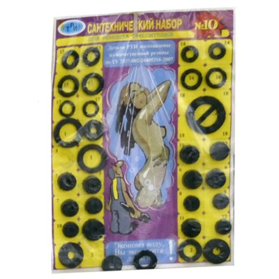 Ремонтный набор для смесителей,вентелей №10 (33шт).Универсальный набор, состоящий из колец, прокладок и клапанов. Предназначен для ремонта и установки в отечественные и импортные смесители, вентилей, гибких подводок, водяных счетчиков и кран-букс различной модификации. Купить в нашем магазине.