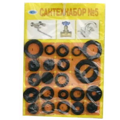 Ремонтный набор для ремнта смесителей,вентелей №5 (22шт).Универсальный набор, состоящий из колец, прокладок и клапанов. Предназначен для ремонта и установки в отечественные и импортные смесители, вентилей, гибких подводок, водяных счетчиков и кран-букс различной модификации. Купить в нашем магазине