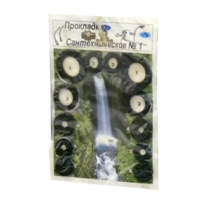 Ремонтный набор №1 "Прокладки сантехнические" (12 шт).Универсальный набор, состоящий из колец, прокладок и клапанов. Предназначен для ремонта и установки в отечественные и импортные смесители, вентилей, гибких подводок, водяных счетчиков и кран-букс различной модификации. Купить в нашем магазине.