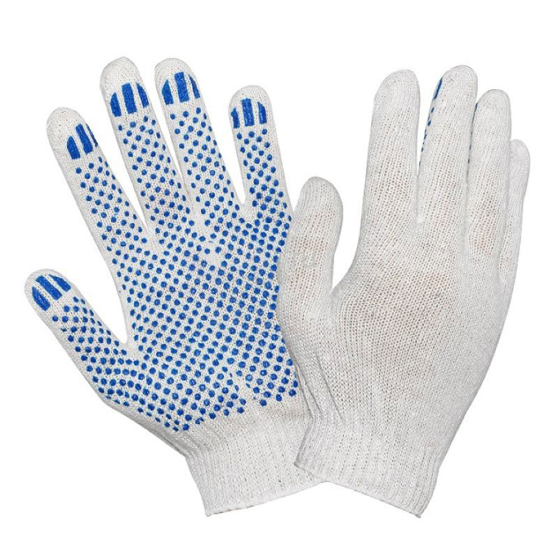 Перчатки х/б с ПВХ покрытием СУПЕР ЛЮКС белые.Перчатки хлопчатобумажные повышенной плотности с точечным ПВХ напылением.Предназначены для защиты рук от механических воздействий и истирания при строительных, погрузочно-разгрузочных и сельскохозяйственных работах.Купить в нашем магазине.