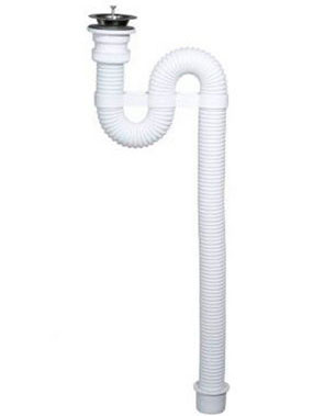 Сифон гофрированный с нержавеющей чашкой (белый) .Применяются для слива воды из мойки в сточные трубы, а также служат в качестве водяного затвора для предотвращения проникновения неприятных запахов из канализации в помещение. Изготовлены из специальной пластмассы белого цвета и нержавеющей стали.Купить в нашем магазине.