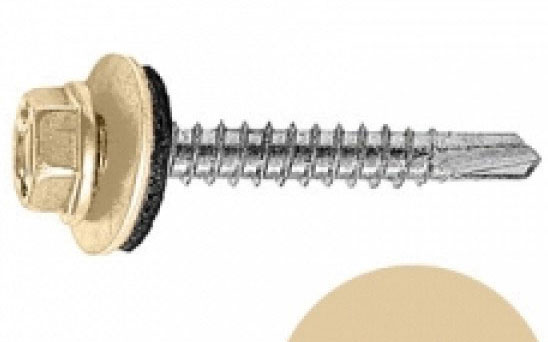 Саморез д/мет.черепицы 4,8х70мм (100шт) слоновая кость RAL1014 - состоит из шестигранной головки под ключ, прорезиненной шайбы, которая препятствует проникновению влаги и самосверлящего наконечника. Резьба бывает редкая,либо частая в зависимости от диаметра самореза. Основное применение-это крепление металлочерепицы или профнастила к деревянной или металлической обрешетки.