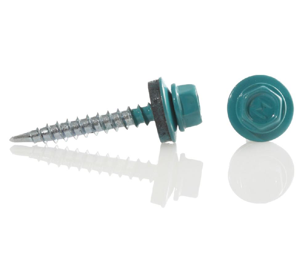Саморез д/мет.черепицы 4,8х29 мм. (250 шт) бирюза RAL5021- состоит из шестигранной головки под ключ, прорезиненной шайбы, которая препятствует проникновению влаги и самосверлящего наконечника. Резьба бывает редкая,либо частая в зависимости от диаметра самореза. Основное применение-это крепление металлочерепицы или профнастила к деревянной или металлической обрешетки.