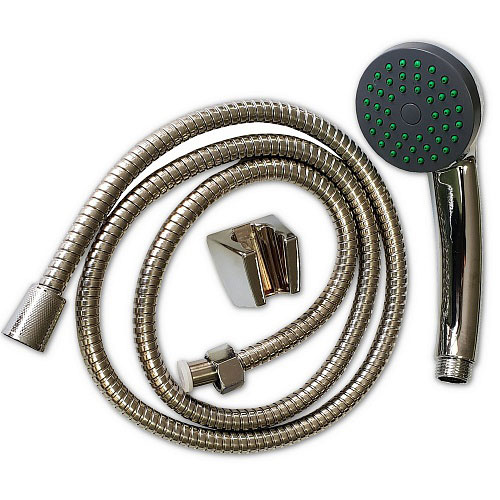 Набор душевой от торговой марки BRIMIX — универсальный, хромированный, подходит к любым душевым системам и смесителям. В комплекте: лейка душевая Green + шланг + кронштейн.