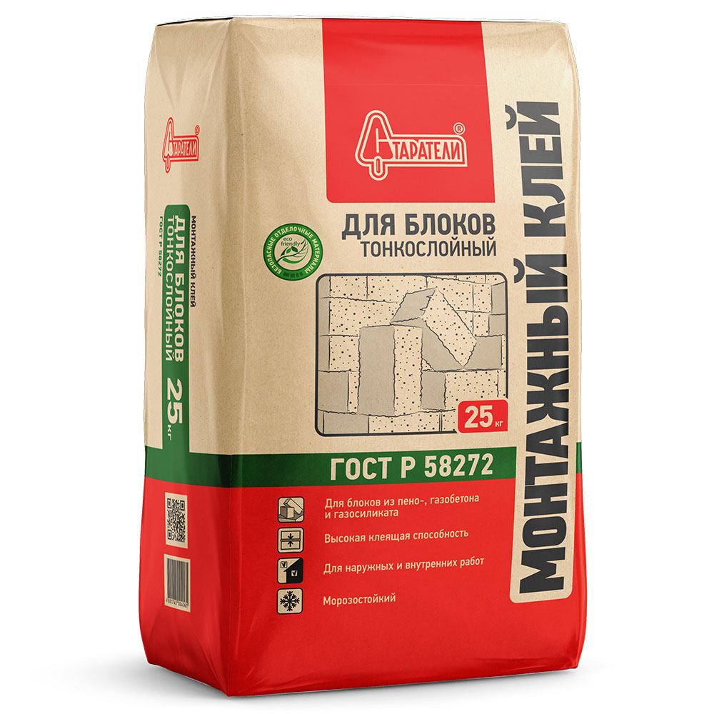 Клей СТАРАТЕЛИ монтажный для блоков тонкослойный 25 кг