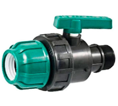 техническую воду. Компрессионный ПЭ кран с резьбой предназначен для перекрытия транспортируемого потока жидкости.