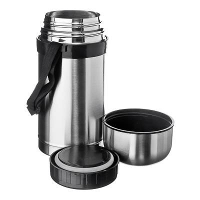 Термос VETTA для еды собъемом 1,0л широким горлом позволяет насладиться вкусным обедом посреди бурного рабочего дня. В термосе вас будут ждать домашние обеды, например, запеченная картошка или мясной супчик. Аксессуар удобно брать на работу, пикник на природе и туристический поход. Надежный корпус и герметичная крышка хорошо удерживают тепло, поэтому обед сохраняет температуру долгое время.