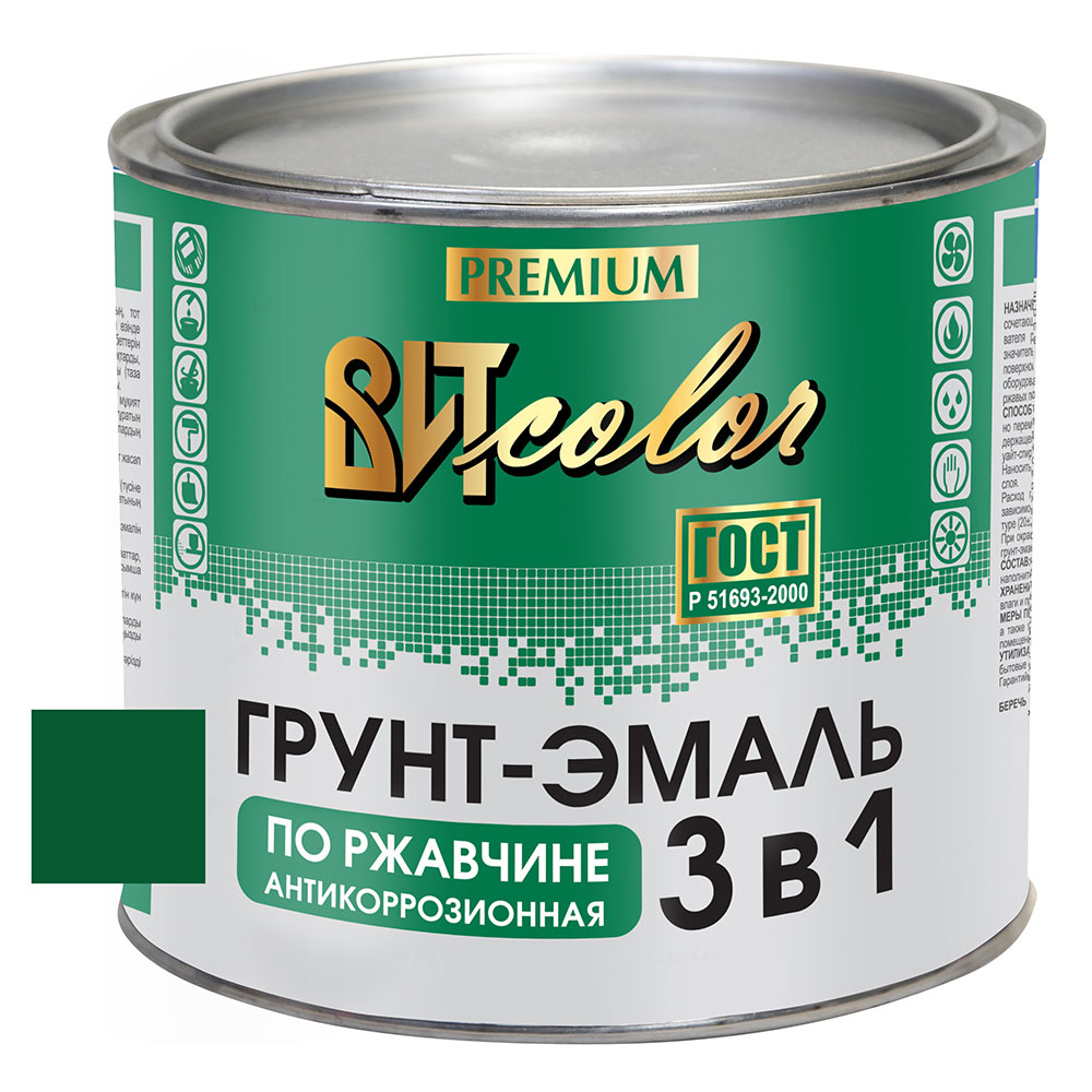 Грунт-эмаль по ржавчине 3 в 1 темно-зеленая ВИТ color 1,8 кг.