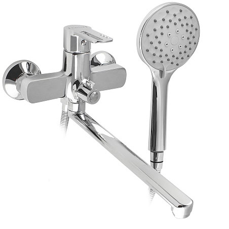 Смеситель в ванную CONSUL длинный излив, шаровый, с дивектором на корпусе, ручка с прорезью.