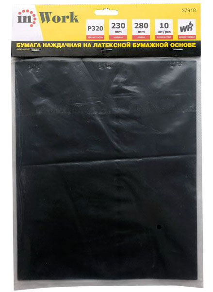 Бумага нажд. inWork в листах 230х280мм Р320, на латексной бумаж. основе, водостойкая (10шт)