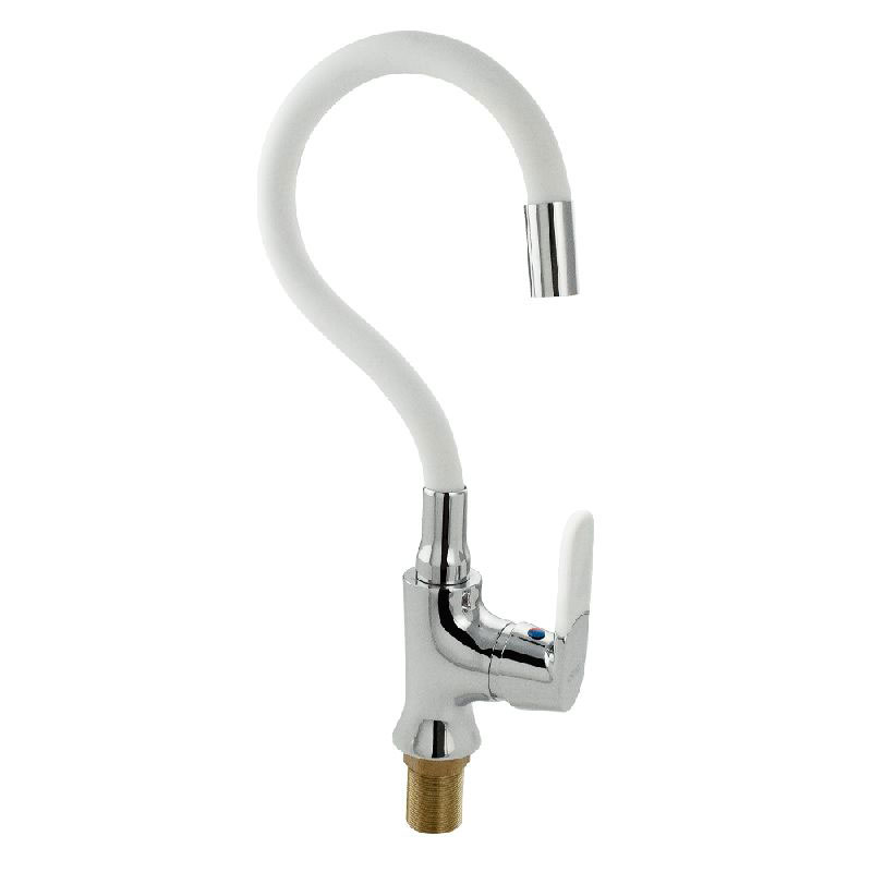 Смеситель для кухонной мойки и раковин, хромированный, боковой, шаровый, d = 40 мм, массивный корпус с гибким изливом белого цвета, с аэратором для экономии воды.