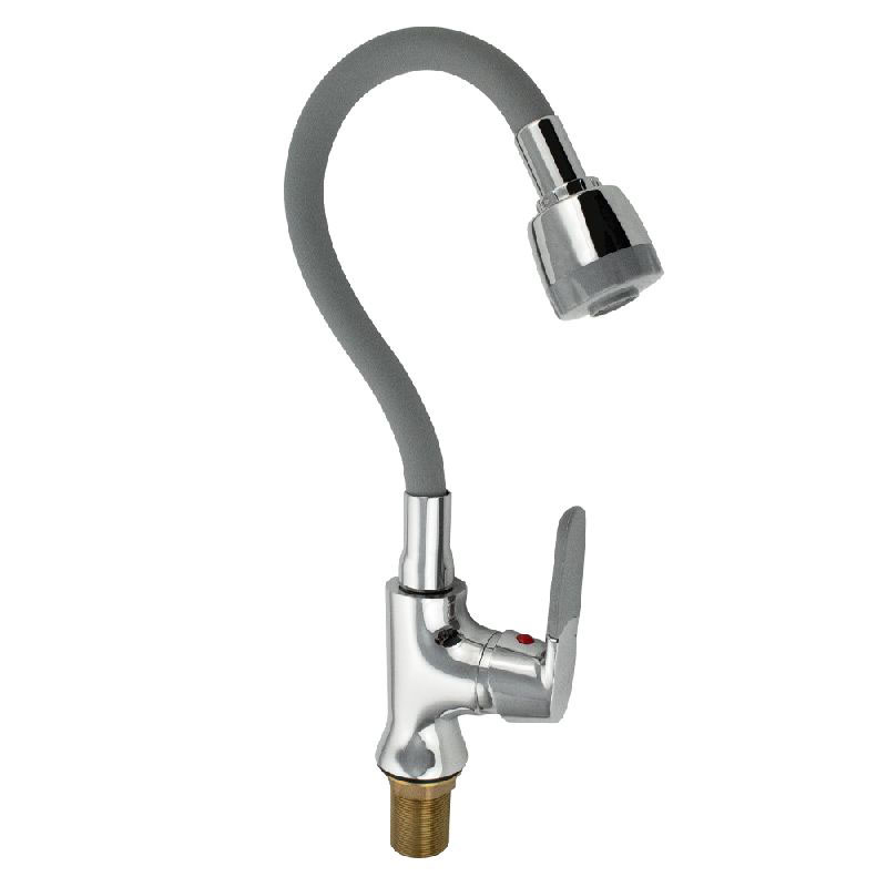 Смеситель кухонный, боковой, шаровый с гибким изливом СЕРЫЙ, с большим аэратором