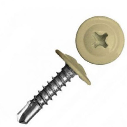 Саморез с пресс-шайбой, наконечник сверло. Саморезы с прессшайбой со сверлом окрашенные используются для соединения тонкого листового металла между собой. Саморез имеет резьбу с мелким шагом и наконечник со сверлом, что дает ему возможность просверливать металл до 2 мм. Чаще всего эти саморезы используют при монтаже заборов для крепления цветного металлического профиля к металлической обрешотки. Для закручивания данных саморезов используют насадки для шуруповертов. Если необходимо закрутить саморез в металл большей толщины, используется сверло по металлу 3,2-3,3 мм, для предварительного засверливания. Саморез с прессшайбой со сверлом окрашенный имеет плоскую головку с прессшайбой, окрашенную порошковой краской, крест ph-2, сверло на конце, покрытие цинк.