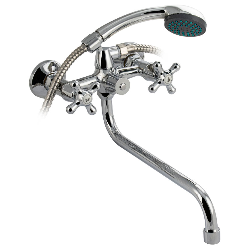 Смеситель в ванную MAYFAIR металлокерамика с шаровым переключ., ручка крест длинным изливом.