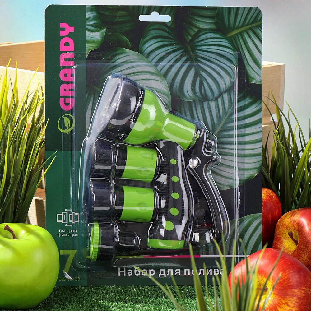 Набор для полива Grandy пистолет 7 режимов, фитинги 3/4", штуцеры на крана 1/2-3/4" нар. рез.JS-9369