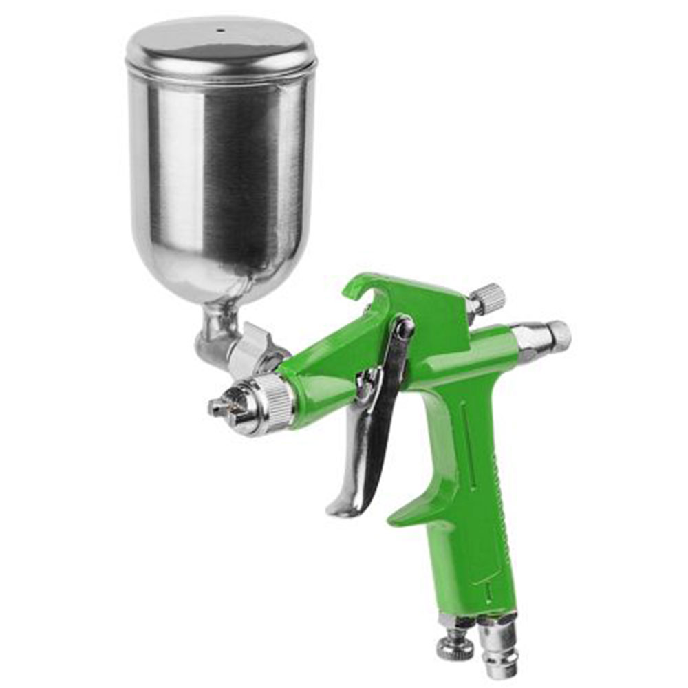 Компактный краскораспылитель типа HVLP с поворотным металлическим бачком разработан для работ в труднодоступных местах. За счет изменения положения бачка материал можно наносить на поверхности в разных плоскостях.