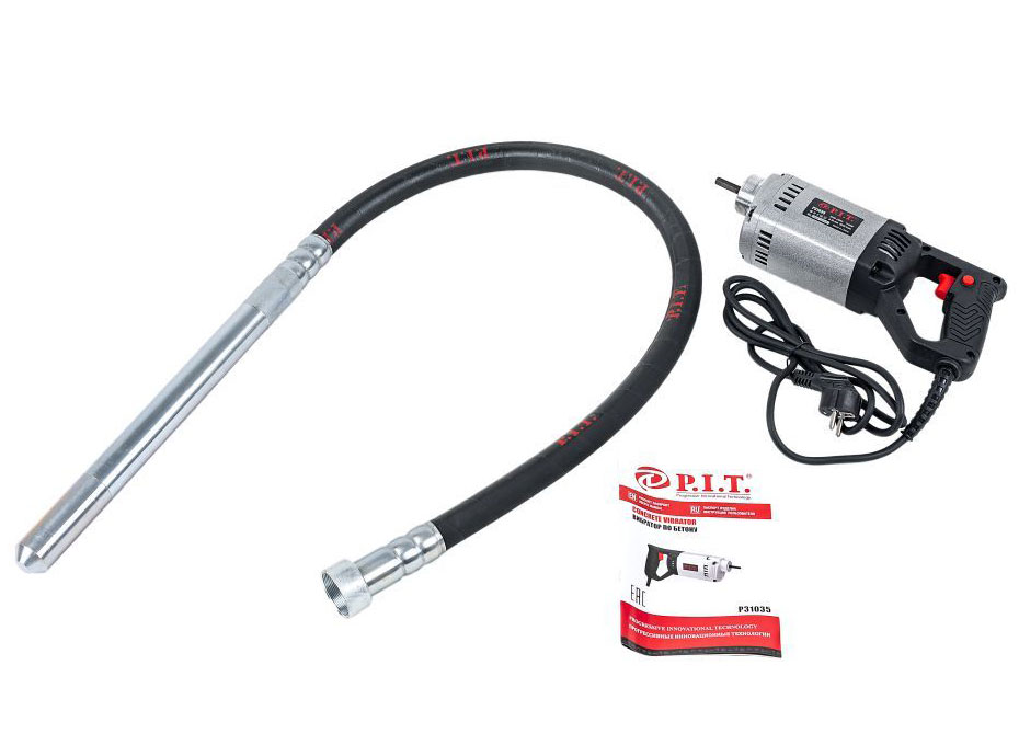 Вибратор для уплотнения бетона глубинный, электрический, ручной PIT P31035 удобный и мощный. Строительный глубинный вибратор помогает достичь лучшего сцепления между свежим бетоном и его ранее уложенными слоями, уплотнить бетонную смесь в различных конструкциях. Качественный результат достигается за счёт высокой мощности инструмента, а лёгкая транспортировка — благодаря небольшому весу. Предназначен для достижения оптимальной консистенции бетонной смеси за счёт уплотнения приготовленного состава. Благодаря высокой мощности обеспечиваются качественные результаты выполнения работ. За одну минуту вибратор совершает около 1300 колебаний. В наборе с инструментом поставляются вибронаконечник (булава) диаметром 35 мм и гибкий вал длиной 1500 мм. Управление осуществляется при помощи куркового механизма. Обладающий небольшим весом и эргономичным исполнением, PIT P31035 характеризуется удобством в эксплуатации.