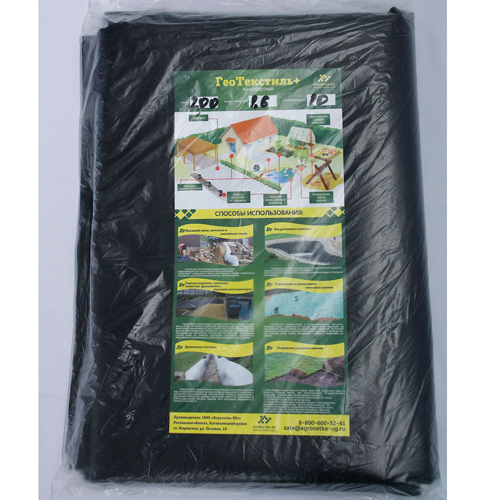 ГеоТекстиль+ (пл. 200гр/м2) 1,6х10м (фасованный) черный
