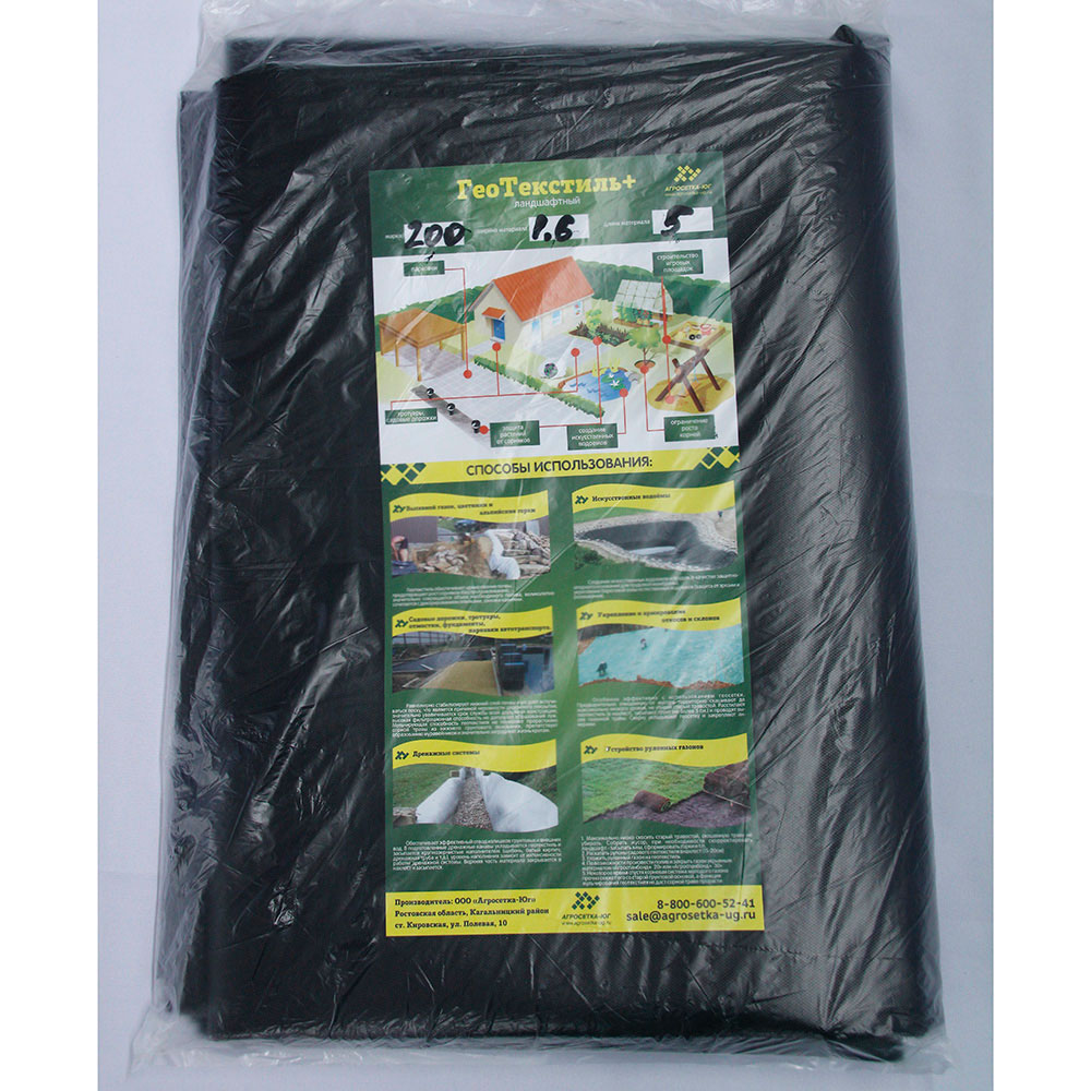 ГеоТекстиль+ (пл. 200гр/м2) 1,6х5м (фасованный) черный