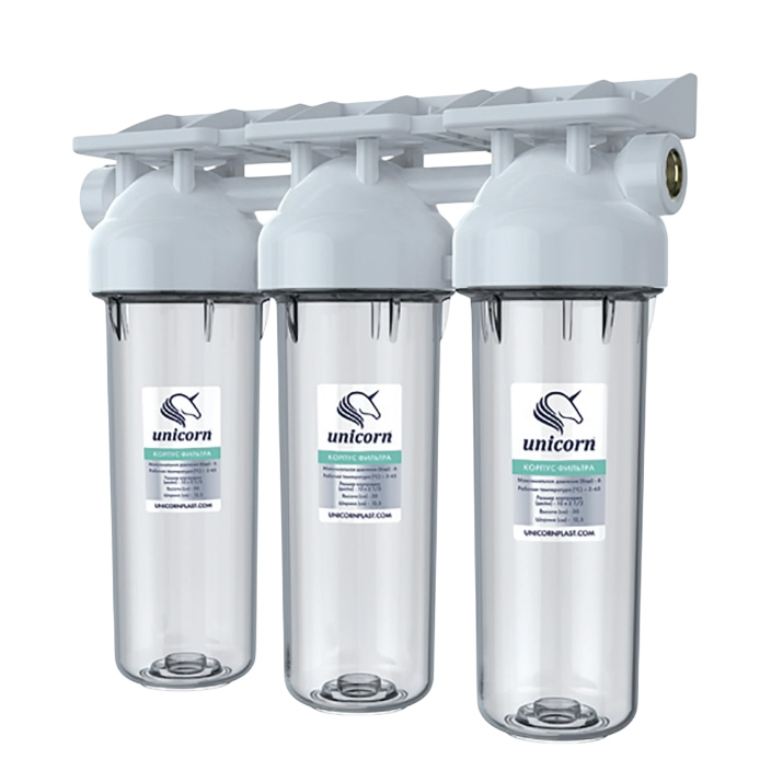 Фильтр магистральный 3/4" KSBR TRIO тройной для холодной воды прозр. 10" UNICORN