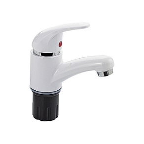 Смеситель для раковины из высокопрочного пластика АБС, БЕЛЫЙ, с коротким изливом, литой корпус, литая ручка — шаровый.