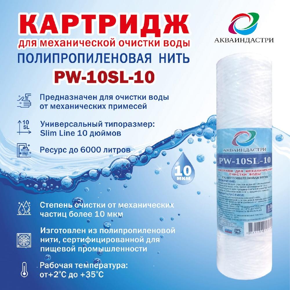 Сменный картридж для проточного фильтра АКВАИНДАСТРИ PW-10SL-10 мкм.
