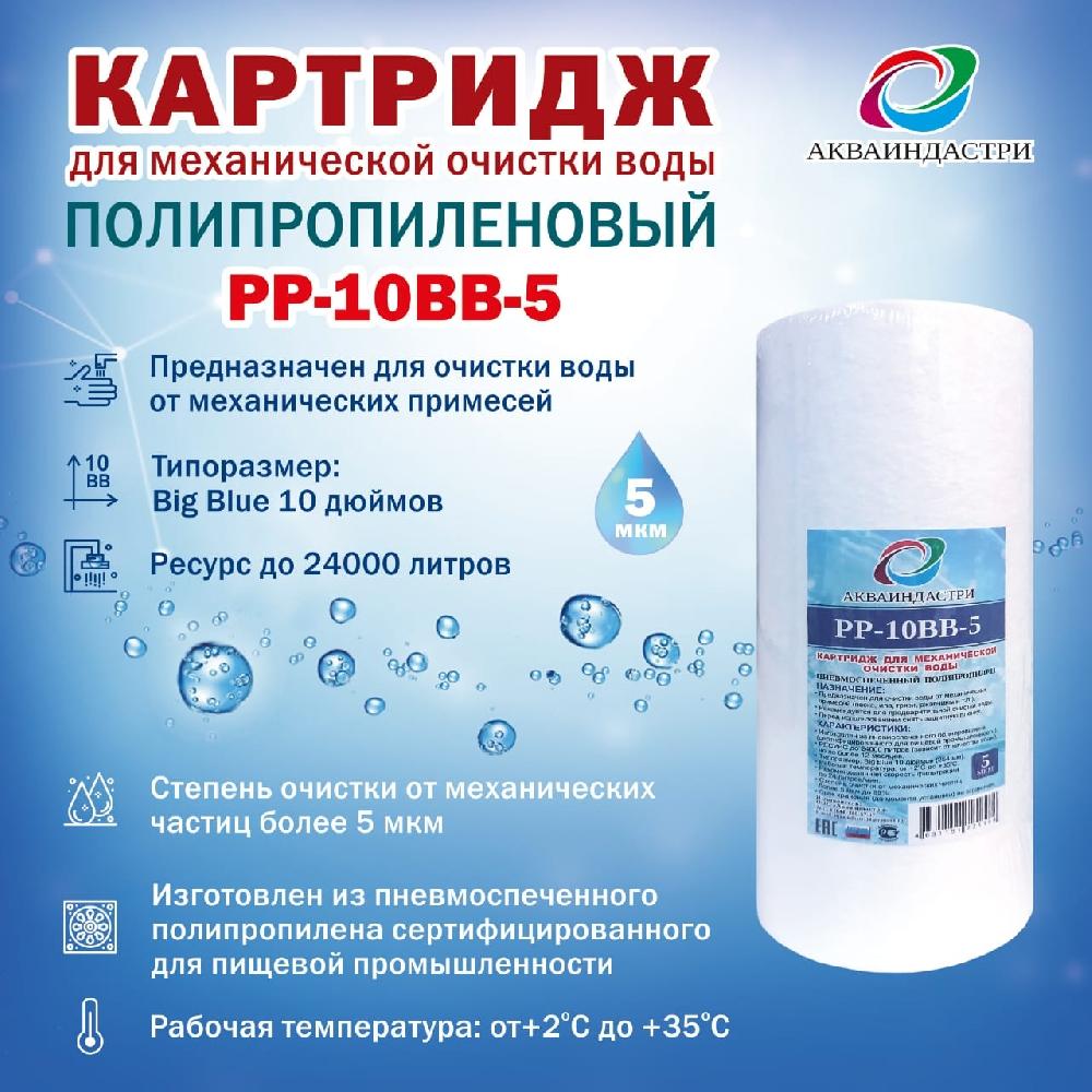 Сменный картридж для проточного фильтра АКВАИНДАСТРИ PW-10BB-5 мкм.