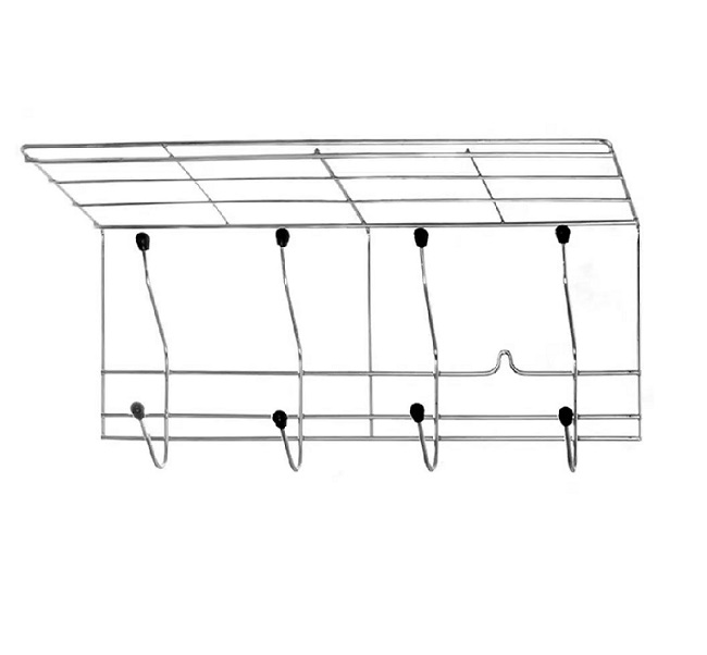Настенная вешалка с 4 крючками 47х9х25 см — компактное решение для хранения одежды дома, в прихожей или на даче без лишних затрат и сверлений.