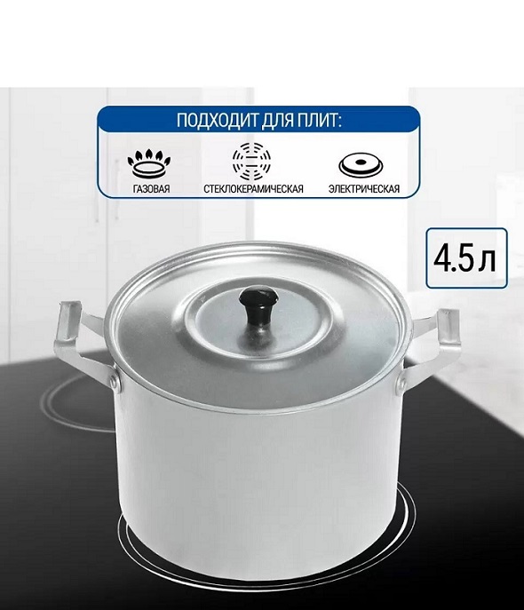 Кастрюля Scovo 4.5 л из алюминия — легкая и вместительная посуда для дома и дачи. Готовьте супы, макароны, пельмени без пригорания и лишних хлопот.