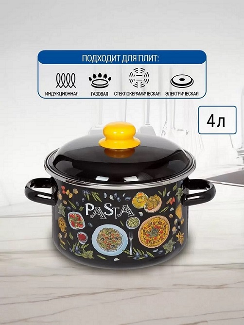 Кастрюля эмалированная "СтальЭмаль" "Паста" 4 л — универсальное решение для индукционных и газовых плит: долговечность, стиль и здоровье вашей семьи.