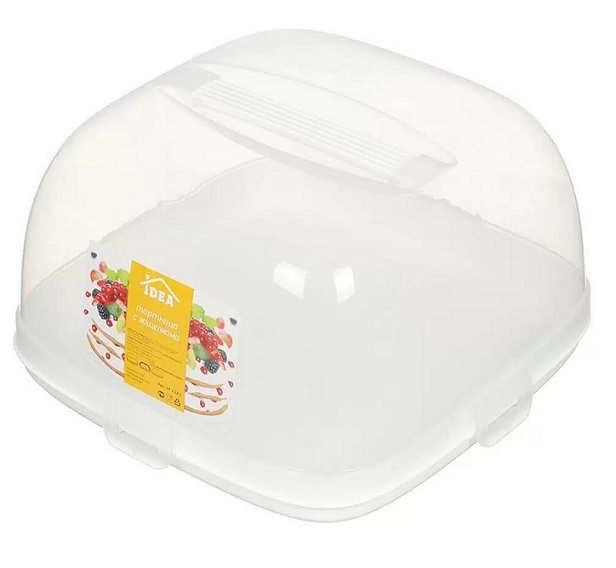 Тортница пластмассовая IDEA предназначена для хранения тортов, пирожных, кексов, чизкейков, печенья и прочих мучных кондитерских изделий. Тортница изготовлена из высококачественного прочного пищевого пластика. Она состоит из квадратного двухстороннего поддона и прозрачной крышки. Благодаря четырём защёлкам крышка плотно "сидит" на подносе, что позволяет сохранить первоначальную свежесть торта и защитить его от посторонних запахов. Крышка изделия имеет удобную ручку для переноски.