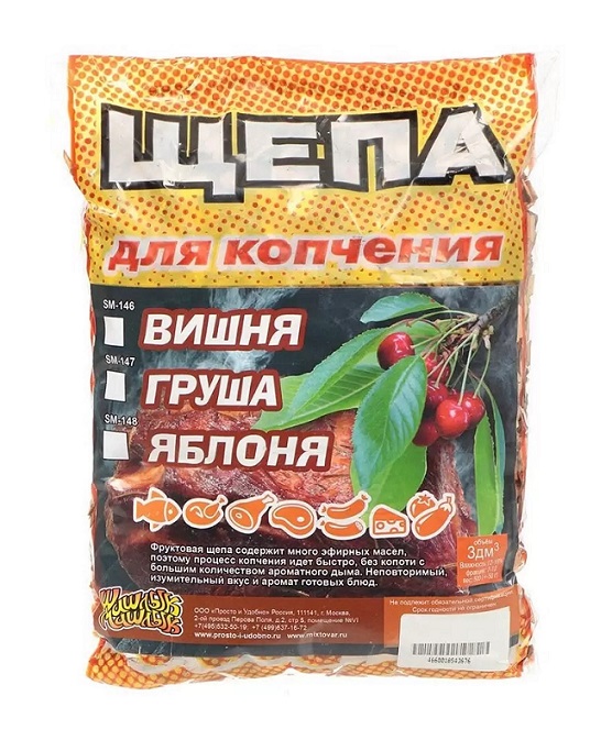 В качестве источника ароматного дыма, которым пропитываются продукты во время приготовления, используется щепа для копчения. Яблоня — одна из самых доступных и душистых разновидностей твердой древесины. Процесс копчения сопровождается частичным обезвоживанием продуктов, что продлевает их сроки хранения и предоставляет кулинарам возможность угостить гостей и домочадцев деликатесными блюдами, приготовленными в домашних условиях.