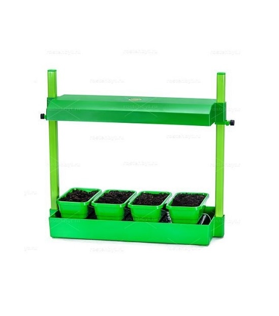 На этой компактной переносной установке с LED-подсветкой можно вырастить зелень, рассаду, молодые растения, а также использовать ее для повышения цветения комнатных растений. Для достижения оптимального результата в конструкции применяется специальная LED-лампа с длиной волны света 625 и 455 нм (красный и синий) для придания растению энергии, необходимой для фотосинтеза. Эта лампа рекомендуется для подсветки растений на подоконнике, балконе и в местах, где недостаточно света.