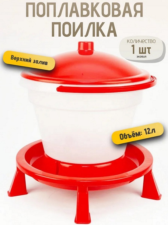 Объем: 12 литров — достаточный запас воды для длительного обеспечения птиц.
