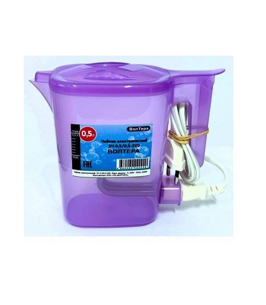Чайник эл. "Волтера" 0,5л фиолетовый Чайник бытовой электрический изготовлен из пищевого пластика: