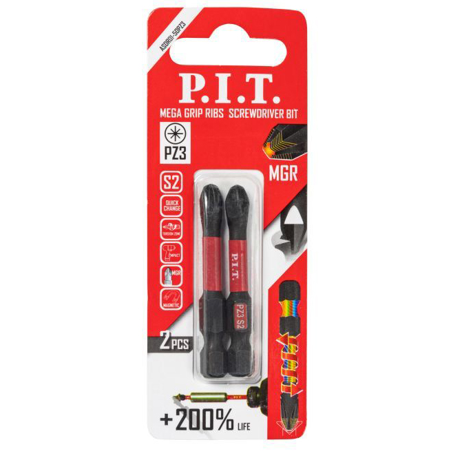 Бита ударная магнитная P.I.T. PZ3x50 мм, IMPACT, торсионная зона, 2 шт. (ASDR01-50PZ3)Длина (мм): 50