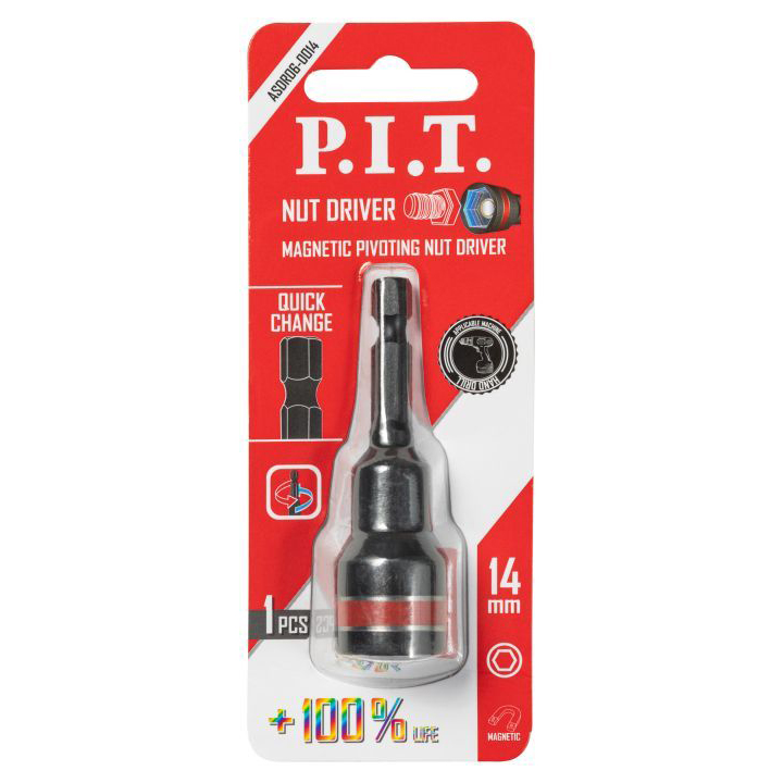 Бита ударная с торцевой головкой магнитная P.I.T. 65x14 мм, IMPACT, торсионная зона (ASDR06-0014)Длина (мм): 65