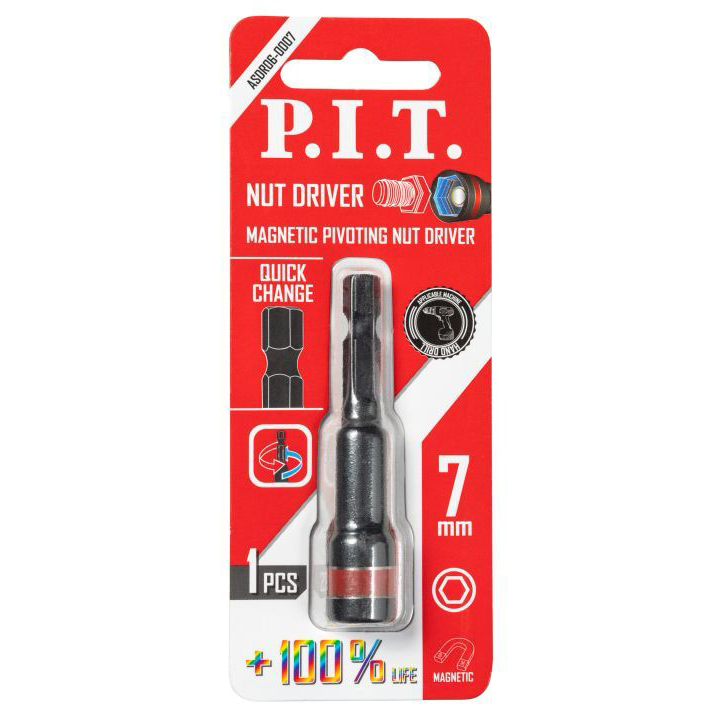 Бита ударная с торцевой головкой магнитная P.I.T. 65x7 мм, IMPACT, торсионная зона (ASDR06-0007)Длина (мм): 65