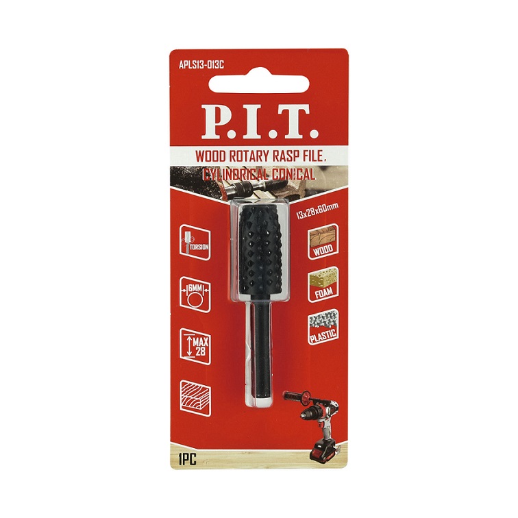 Шарошка стальная по дереву, пластику, монтажной пене P.I.T. 13x28 мм, хвостовик 6 мм (APLS13-013C).