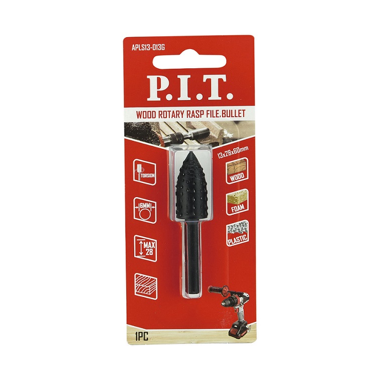 Шарошка стальная по дереву, пластику, монтажной пене P.I.T. 13x28 мм, хвостовик 6 мм (APLS13-013G).
