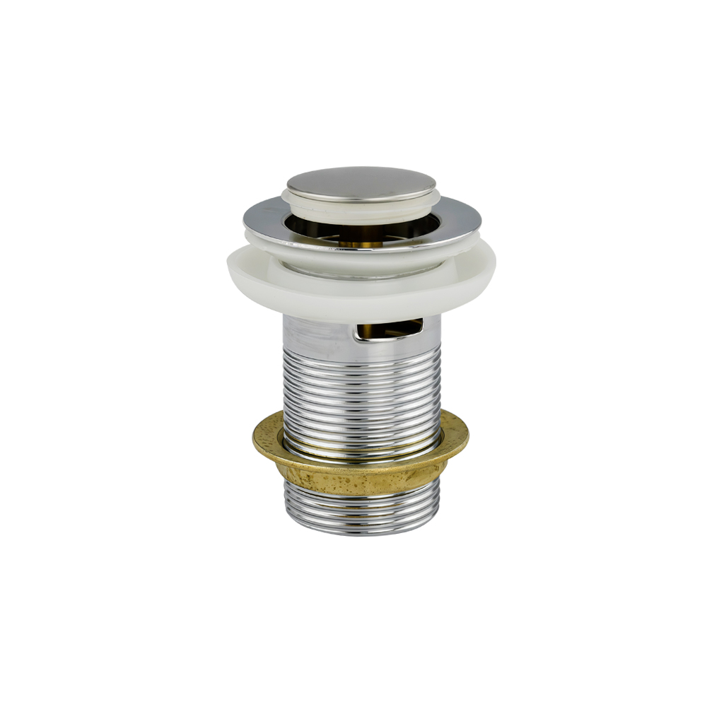 Донный клапан из нержавеющей стали, хромированный, с переливом, представляет собой несложный механизм, который устанавливается непосредственно в сливное отверстие раковины и работает как пробка. С системой «Клик-Клак» и большой заглушкой клапан надежно закроет сливное отверстие раковины. Используется для умывальников с переливом.