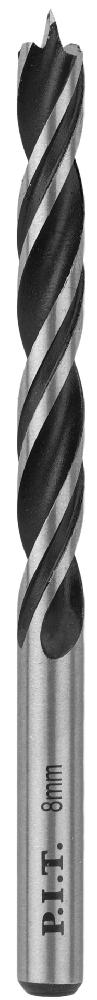 Сверло по дереву спиральное P.I.T. Ø8x117мм, круглый хвостовик, центр. шип (AWOD01-0008)
