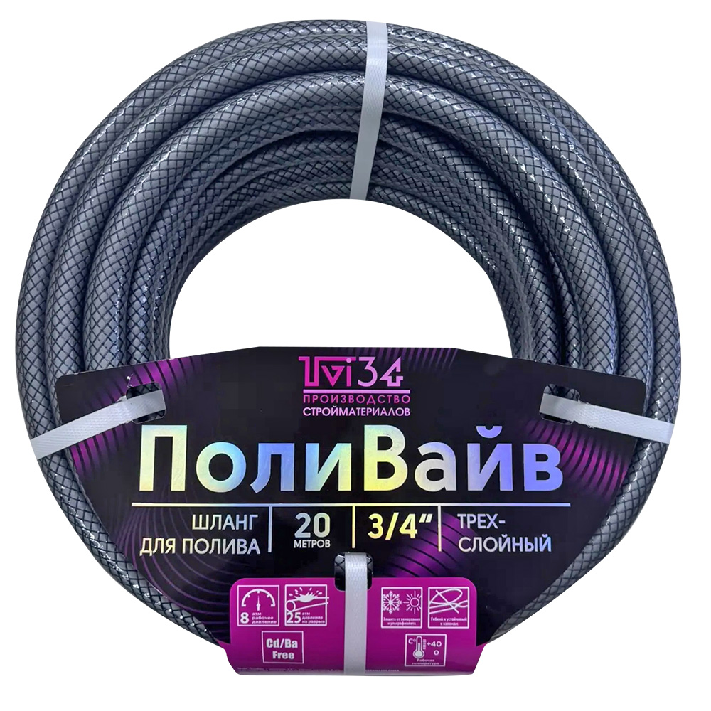 Шланг ПолиВайв с диаметром 3/4" и рабочим давлением 8 атм представляет собой надежное трехслойное решение для садового полива. Его многослойная конструкция обеспечивает повышенную устойчивость к перегибам и гарантирует долговечность использования. Благодаря широкому температурному диапазону от 0 до +40°C, шланг можно использовать в различных погодных условиях, а светонепроницаемый промежуточный слой предотвращает рост водорослей внутри. Важной особенностью данной модели является экологическая безопасность - в составе отсутствуют вредные фталаты, кадмий, барий и свинец.