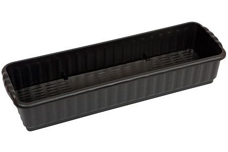 Ящик для цветов и рассады с дренажной решеткой выполнен в размере 59х19х12см. Он изготовлен из полипропилена черного цвета. Размеры ящика создают условия для свободного развития корневой системы большинства растений. Ящик обладает повышенной плотностью и влагостойкостью, легко помещается на узких балконных полках, подоконниках. Непрозрачные стенки оберегают корни от ультрафиолета. Дренажная решетка помогает регулировать увлажненность почвы, спасает растения от гибели при избыточном поливе. Ящик легко моется, сохраняет форму на солнце, не ломается при падении.