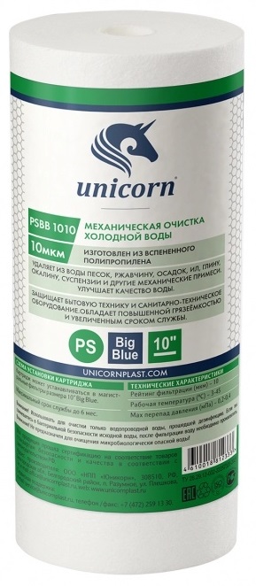 Картридж механический для холодной воды 10" ВВ, 10 мкм UNICORN.